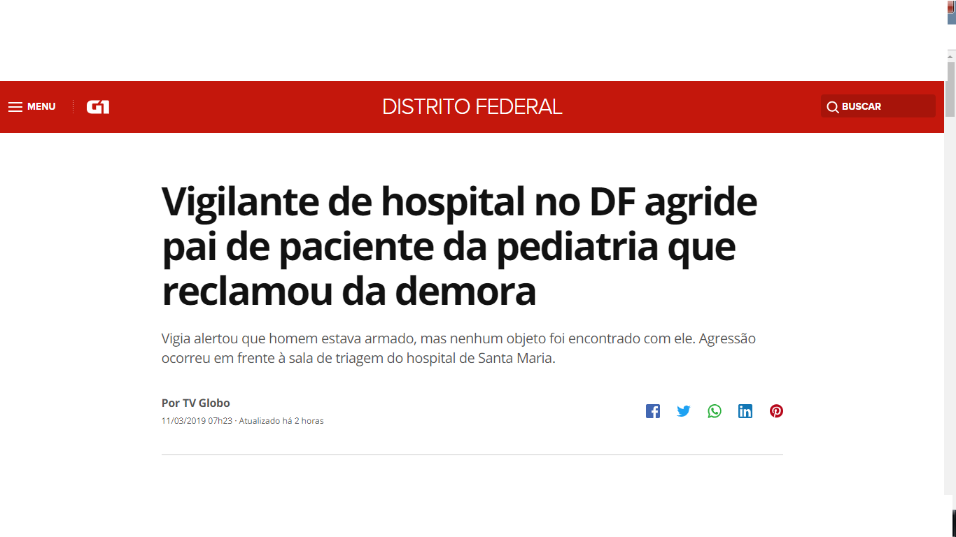 Abaixo, um enfoque no título de uma reportagem do portal de notícias G1, da rede Globo de televisão: